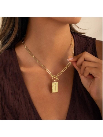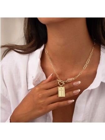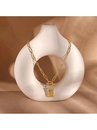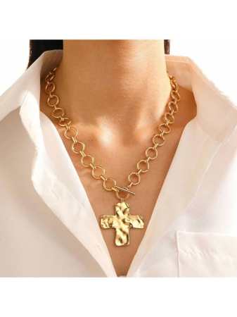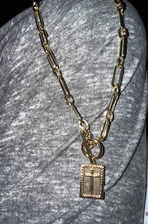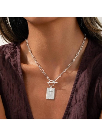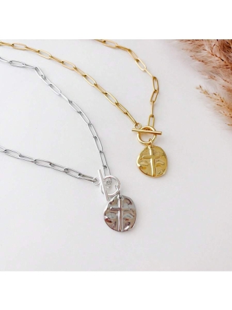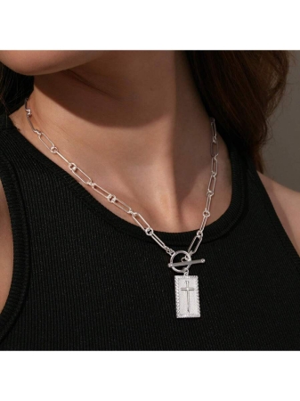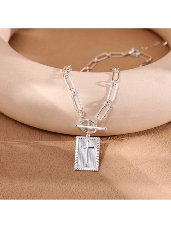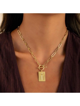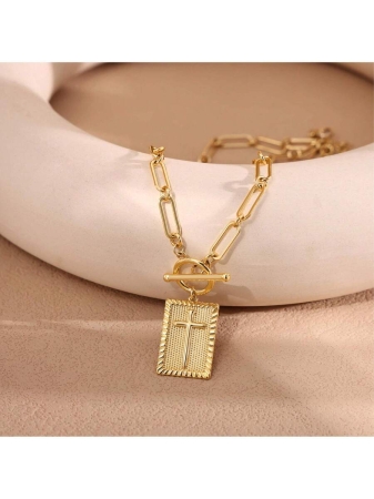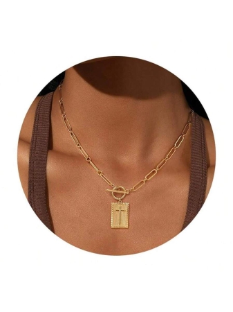 3 reviews for 1-Piece Gold And Silver Cross Pendant Necklace For Women, Toggle Clasp Rectangle Cross Charm Necklace, Dainty Paperclip Chain Religious Jewelry Gift For Christian Faith, Baptism, First Communion