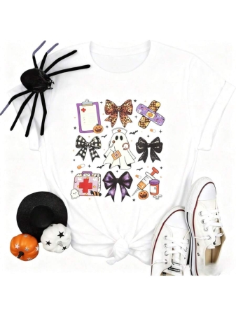 [100% Cotton] Halloween Ghost Nurse Shirts – Boo Boo Crew Graphic Tee Funny Spooky Season T Shirt Fall Short Sleeves Tops-Unisex Women & Men’s Festival Daily Wear
