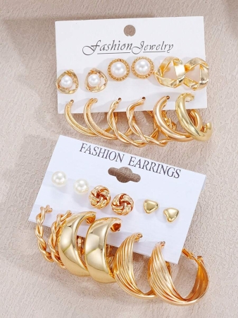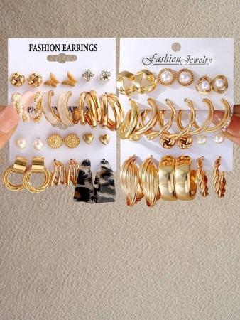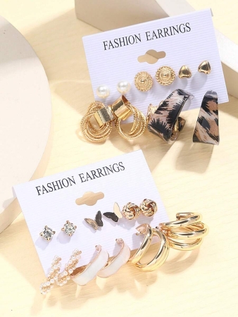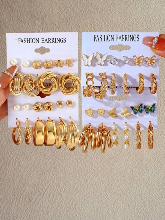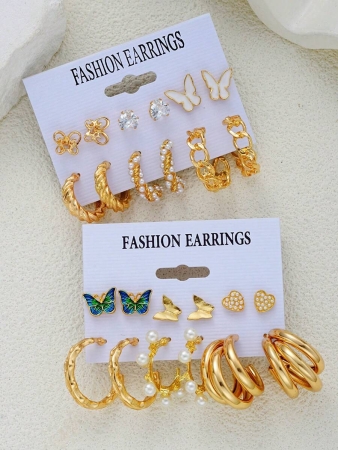 12/46/48pcs Fashionable & Elegant Butterfly & Heart Faux Pearl Earring Set For Women, Suitable For Vacation, Date, Party, Mother’s Day, Summer Gift, Daily Matching