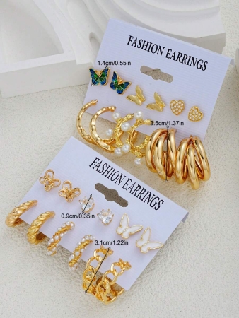 3 reviews for 12/46/48pcs Fashionable & Elegant Butterfly & Heart Faux Pearl Earring Set For Women, Suitable For Vacation, Date, Party, Mother’s Day, Summer Gift, Daily Matching