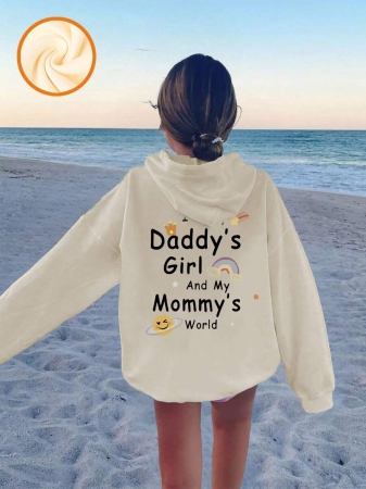 1pc Girls’ Casual Printed Pullover Hoodie Sweatshirt, Warm Thermal Lined, Long Sleeve, Autumn/Winter – Fun And Colorful Hoodie To Inspire Imagination In Young Minds