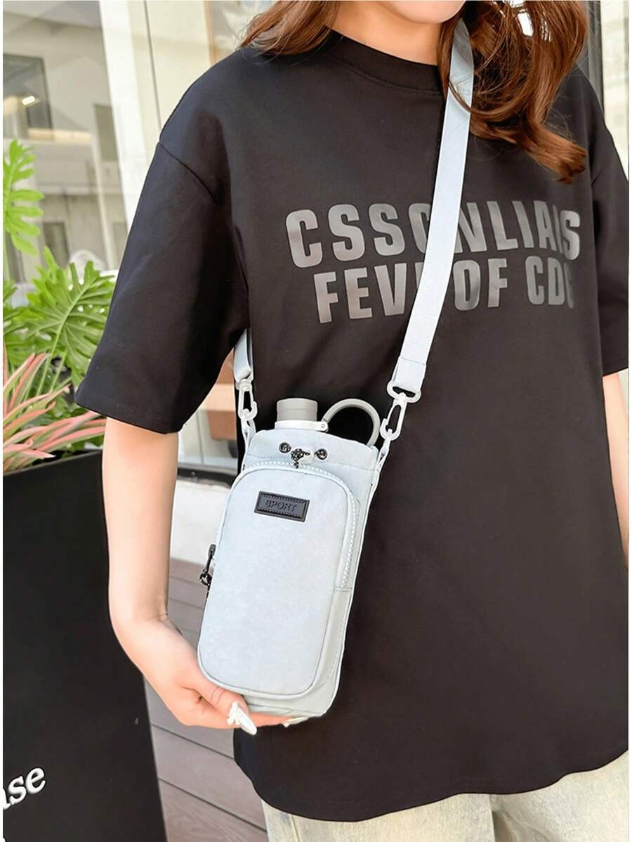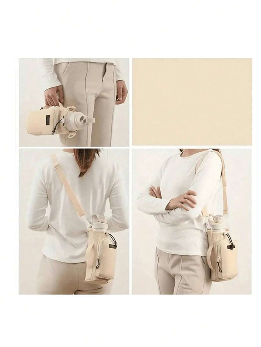 1Pc Nylon Water Bottle Carrier With Adjustable Shoulder Strap, Insulated Outdoor Hiking Camping Travel Accessory With Zippered Pockettravel Organizer Small Suitcase Accessories Home Cruise Essentials Travel Bag Mini Portable Travel Organizer Portable Holiday Organizer Great For Hiking And Outdoor Activities, With A Versatile Front Pocket Design For Easy Portability The Perfect Gift