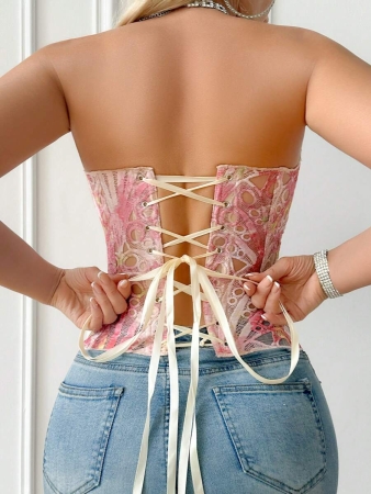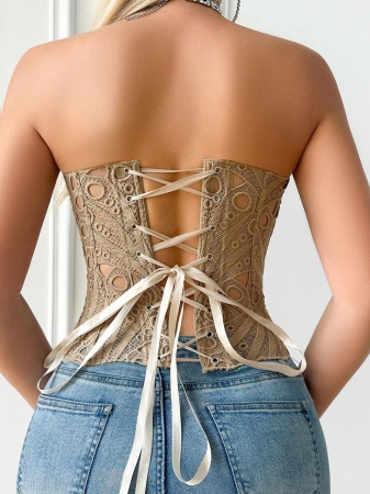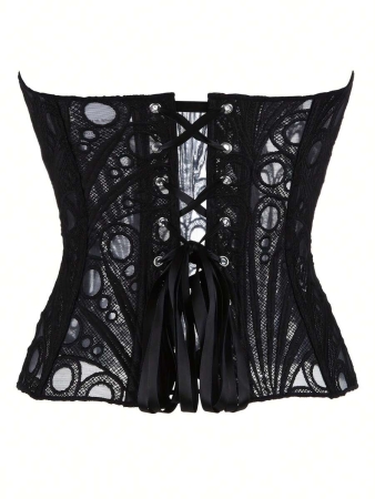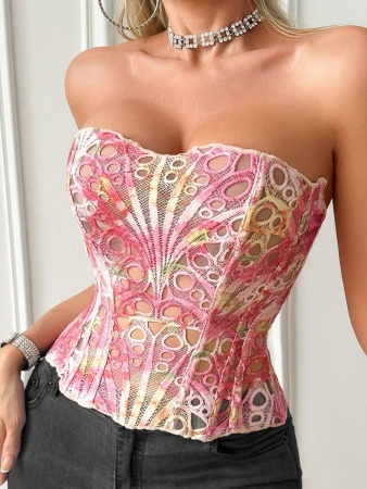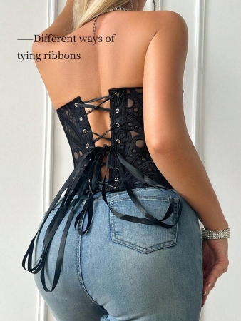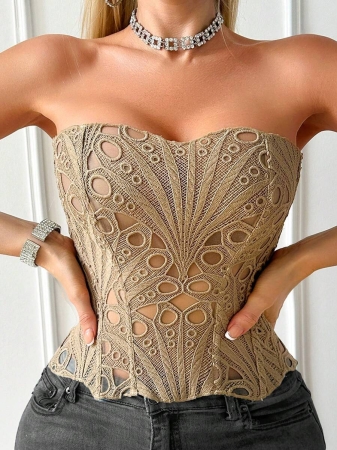 1pc Textured Sheer Floral Lace Corset Hollowed Out Bustier Cute Crop Top For Daily Wear/Party/Wedding
