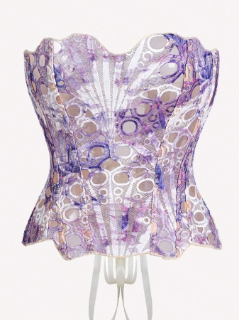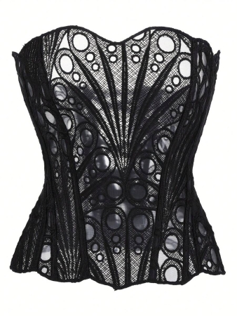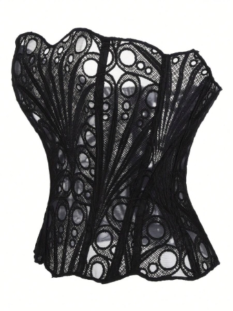 3 reviews for 1pc Textured Sheer Floral Lace Corset Hollowed Out Bustier Cute Crop Top For Daily Wear/Party/Wedding