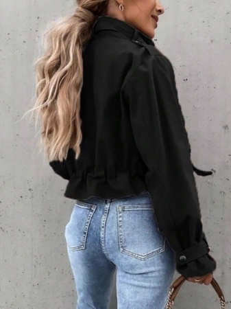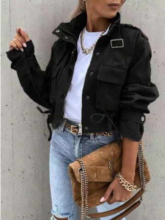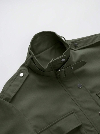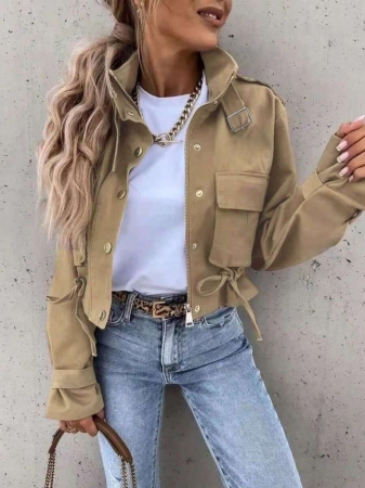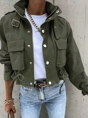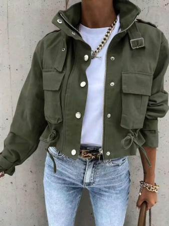 3 reviews for 1pc Women’s Fashionable Solid Color Long Sleeve Front Zipper Casual Short Jacket, Khaki High Collar Long Sleeve Jacket With Button Detail And Pockets, Regular Hem, Non-Stretch