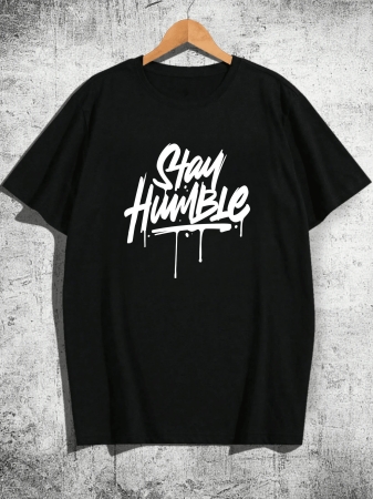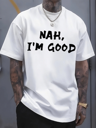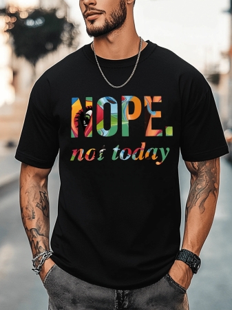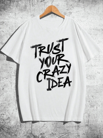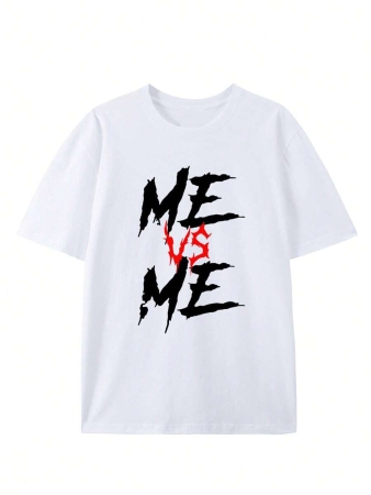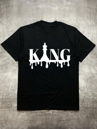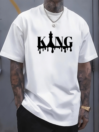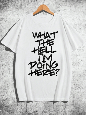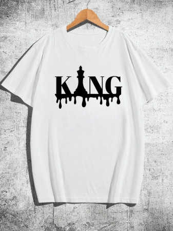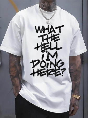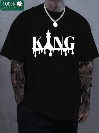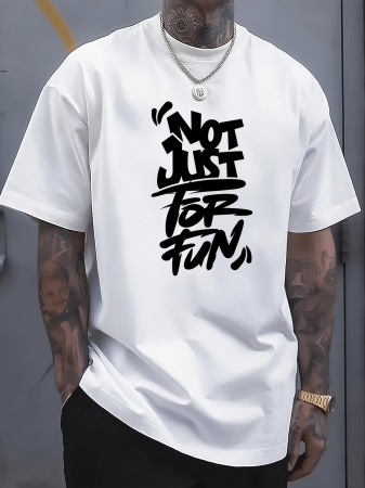 220 Grams Round Neck Short Sleeve Men’s T-Shirt, Creative Printing Pattern, Simple Design, Knitting Process, Soft And Comfortable, Suitable For Campus Wear, Party Gathering, Daily Wear, A Good Choice For Family And Friends