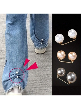 2pcs Pearl Jeans Ankle Clip, Chest Anti Light Needle, Anti Stepping Slipper Buckle, Pants Length Adjuster