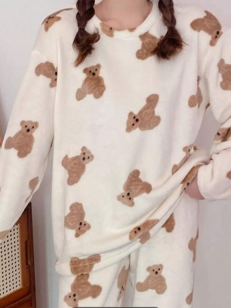 3 reviews for 2pcs Winter Sleepwear Set, Flannel Fluffy Pajama Set With Cute Bear Print, Simple And Fashionable Sleepwear,Two Pieces Set, Fall Winter Clothes