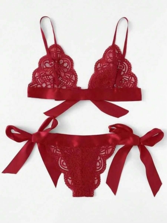 3 reviews for 2pcs Women Sexy Lace Lingerie Set, 3-Piece Hollow Out Bowknot Erotic Underwear, Rave
