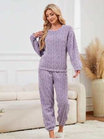 2pcs Women Winter Pajama Set, Minimalist Solid Color Thick Long Sleeve & Long Pants Homewear, Suitable For Indoor & Outdoor Wear, Cozy Outfits, Fall Clothes