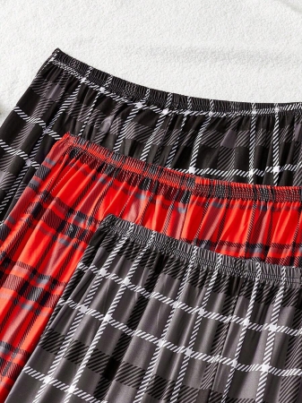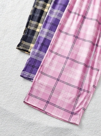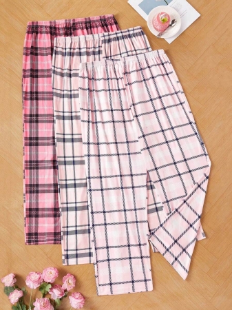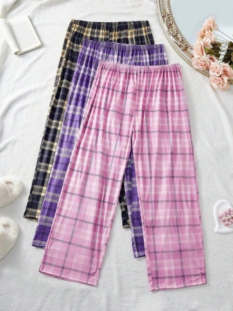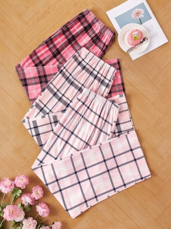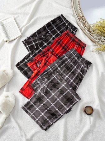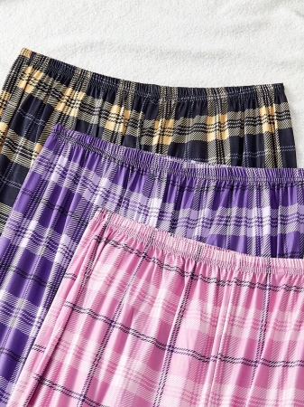 3pcs/Set Plus Size Women Elastic Waist Loose Plaid Pajama Cozy Pants, Fall Clothes