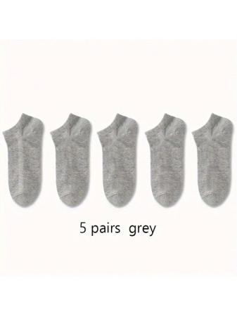 5 Pairs Of Black, White, And Gray Solid Color Thin Short Socks Set, Simple And Multifunctional Casual Invisible Socks, Anti Odor, Suitable For Both Men And Women, Suitable For Wearing In All Seasons, Moisture Wicking Sports Socks, Anti Slip Design
