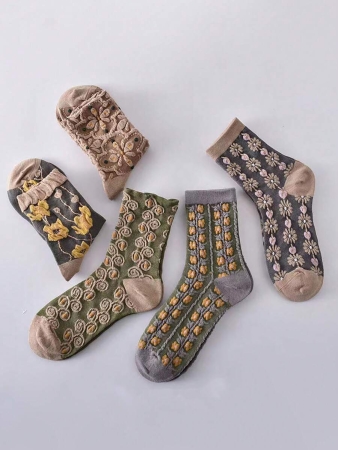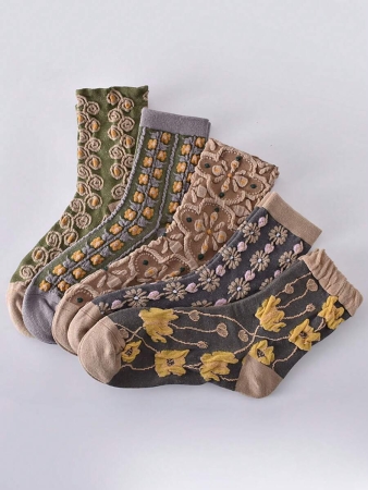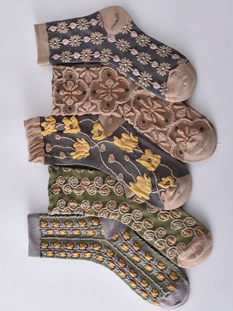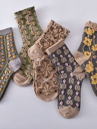 3 reviews for 5 Pairs Vintage Women’s Crew Socks With Embossed Court Theme Women Mid-Calf Socks, Fall
