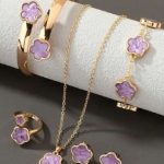 3 reviews for 6pcs/Set Lucky Flower Jewelry Set, 1pc Necklace, 1pc Bracelet, 1pc Bangle, 1pc Ring, 1 Pair Earrings, Suitable For Daily, Party, Holiday