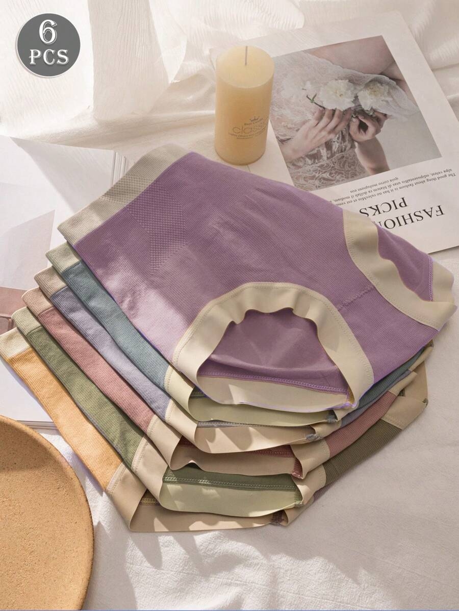 6pcs Women’s Seamless High Waist Triangle Panties, Assorted Colors