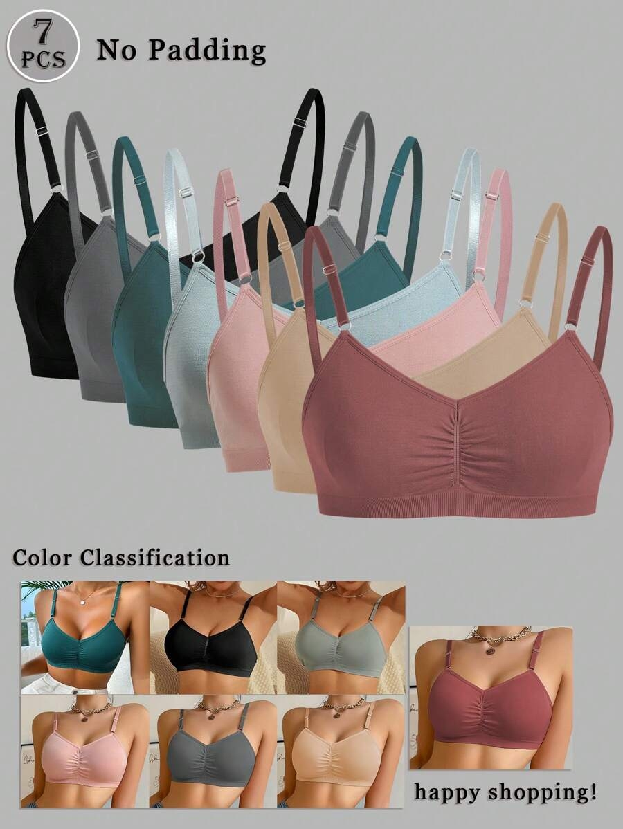 7pcs Seamless Undergarment Set, Comfortable Casual Bra With Adjustable Straps