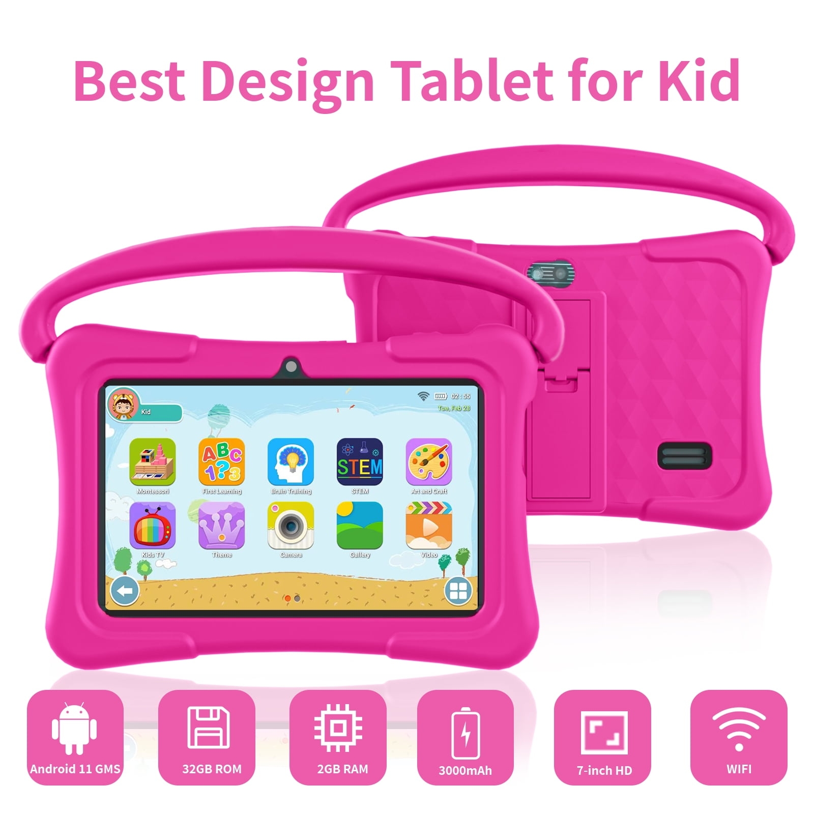 Android 11 Kids Tablet 7-inch 32GB Google Play KidTablet iWawa APP Pre-loaded with kidproof box Learning Education Netflix Youtube