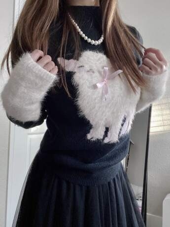 3 reviews for Black High Neck Long Sleeve Knit Sweater For Women, Cute Sheep Design, Turtleneck Pullover, Autumn Winter,Long Sleeve Tops