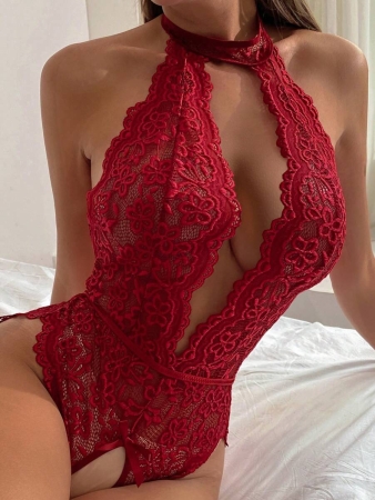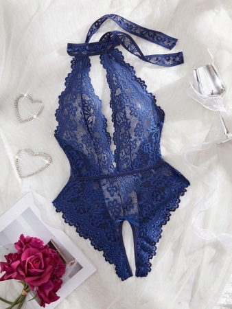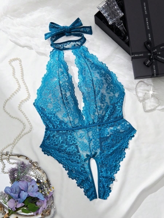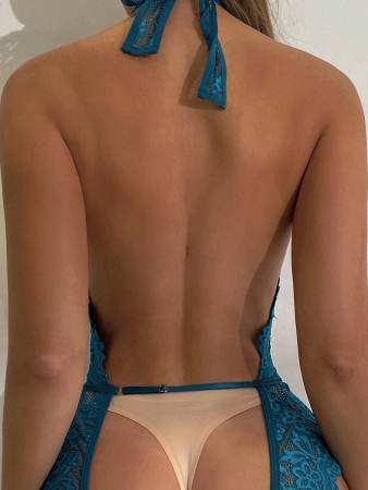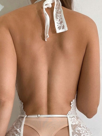 3 reviews for Bow Detail Lace Halter Teddy Bodysuit Without Panty, Lingerie Bow Tie
