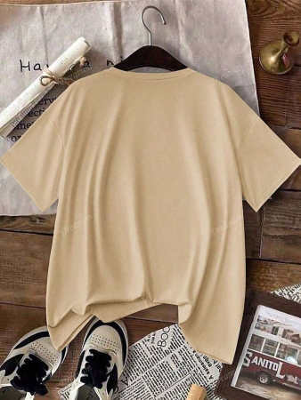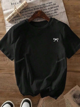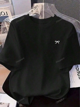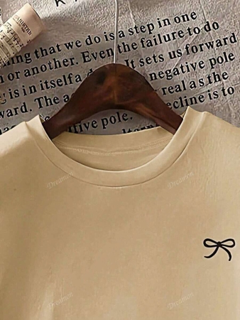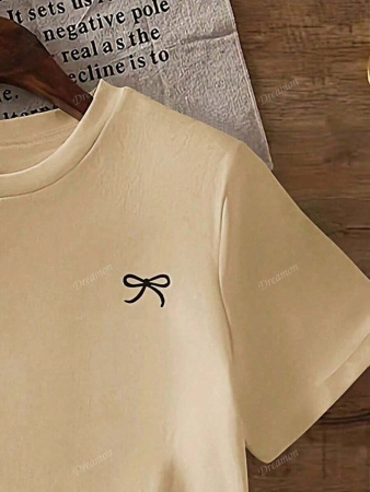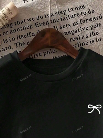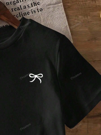 Bow Print Dropped Shoulder Loose Fit Short Sleeve T-Shirt – White And Navy Off-The-Shoulder Cropped Top – Unisex