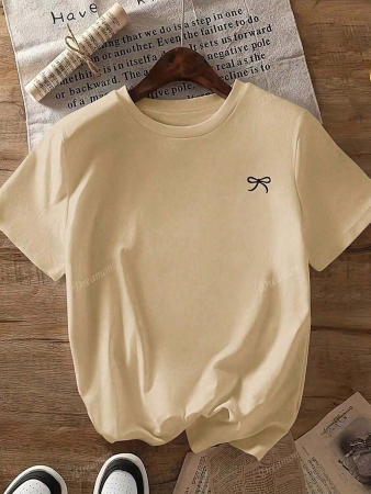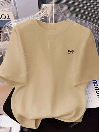 1 review for Bow Print Dropped Shoulder Loose Fit Short Sleeve T-Shirt – White And Navy Off-The-Shoulder Cropped Top – Unisex