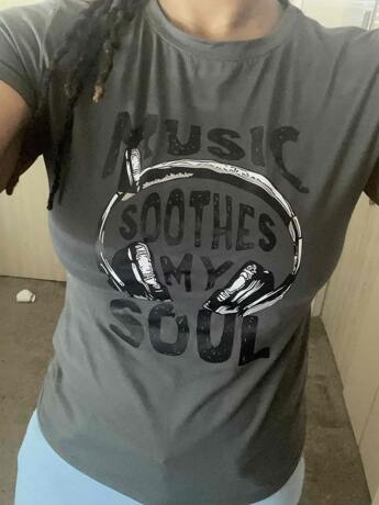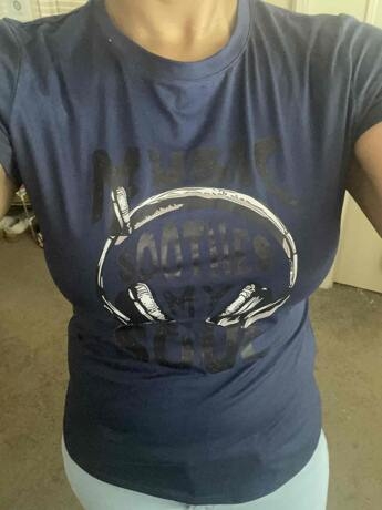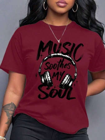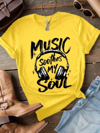 3 reviews for Chiquease ‘Music Soothes My Soul’ Headset Graphic Tees Letter Slogan T-Shirt, Round Neck Short Sleeved Women Tops