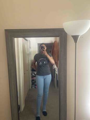Soft material very comfortable and breathable true to size if you want a tighter fit size down for my ladies with a long torso these shirts go past my waist