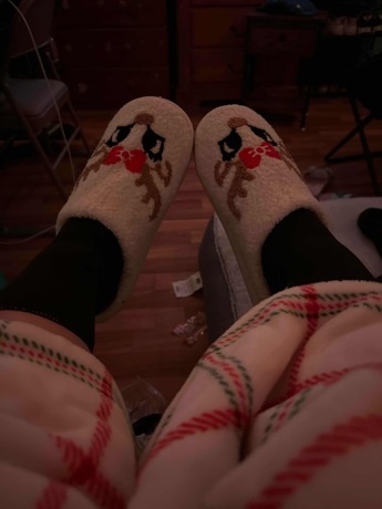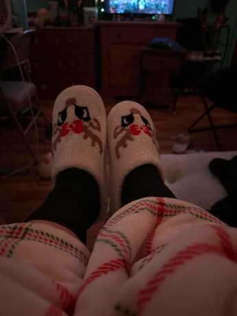 3 reviews for Christmas Style Pattern Fuzzy Slippers For Women And Men, Winter Warm Closed Toe Flat Floor Shoes, Cozy Soft Sole Home Slippers