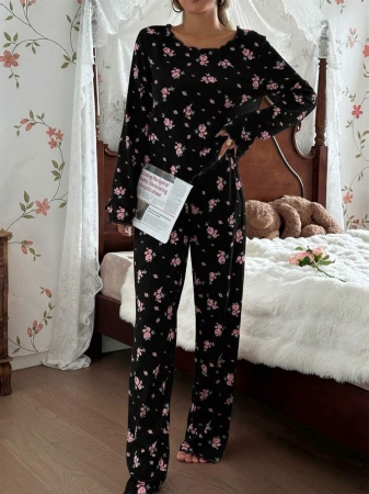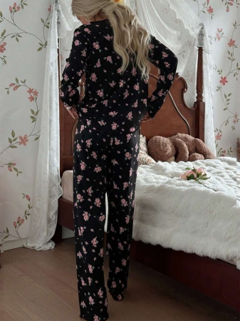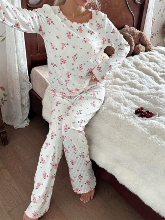CottageSlumber Women’s Cute Ditsy Floral Ribbed Trim Long Sleeve Top & Pants Romantic Floral Pajama Set Sleep Wear Women 2 Pieces Set, Fall Winter Clothes