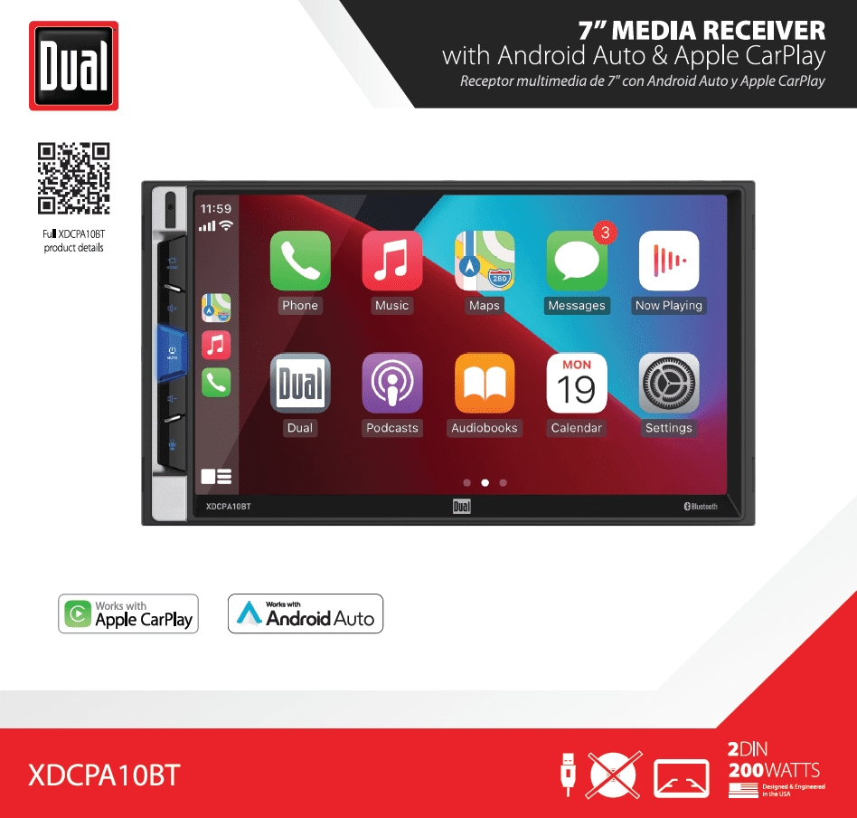- Apple Car Play & Android Auto – your Dual Electronics car stereo head unit has just become your personal assistant on your road trip; Siri/Android will help you make/return calls and listen to voicemails, send, read and reply to text messages, access all your favorite music while displaying artist and track information and provide turn-by-turn directions including mirroring the receivers screen onto your Dual car stereo