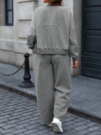 Easura 2pcs Plus Size Casual Zip-Front Top And Drawstring Pants Set Fall Cloth For Women