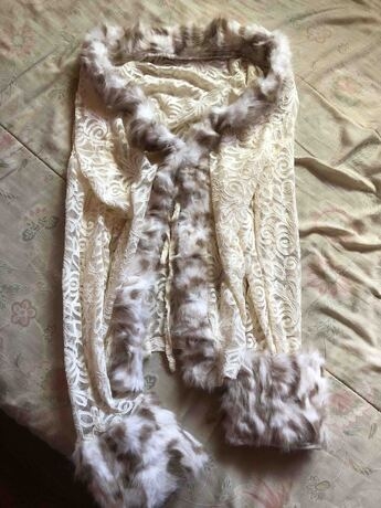 3 reviews for Elamini 1pc Apricot Lace Sheer Fur Collar Tie-Up Lightweight Mesh Vintage Style Jacket For Women, Autumn/Winter