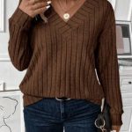 3 reviews for EMERY ROSE Casual Fashionable Minimalist 12*4 Fleece Ribbed V-Neck Plus Size Sweatshirt, Autumn/Winter