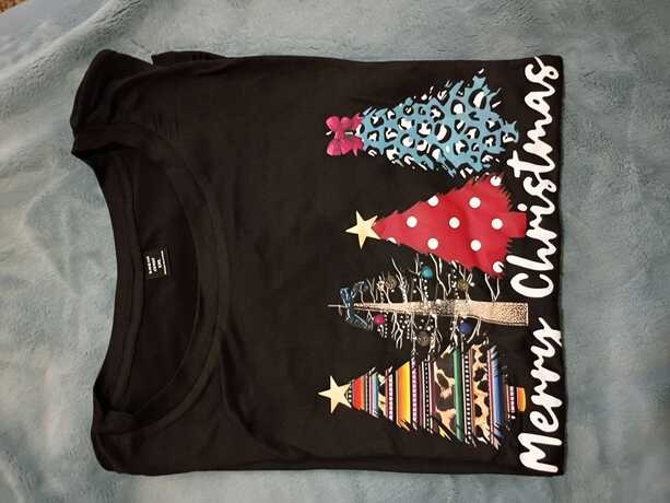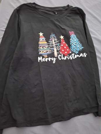 3 reviews for EMERY ROSE Christmas Letter Slogan & Christmas Tree Pattern Round Neck Long Sleeve Fashionable Plus Size T-Shirt