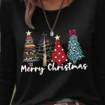 3 reviews for EMERY ROSE Christmas Letter Slogan & Christmas Tree Pattern Round Neck Long Sleeve Fashionable Plus Size T-Shirt
