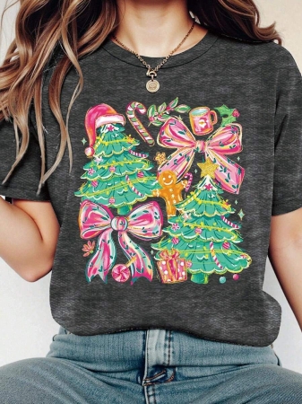 3 reviews for EMERY ROSE Cute Gingerbread Man Christmas Tree Print Casual Plus T-Shirt For Christmas