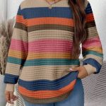 3 reviews for EMERY ROSE Plus Size Women Casual Colorful Striped Print Loose Fit Crew Neck Long Sleeve Sweatshirt, Waffle Texture, Suitable For Autumn/Winter Fall Winter Fall Tops Women Pullover For Women Striped Sweater Striped Long Sleeve