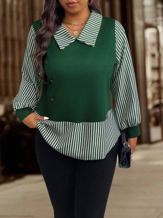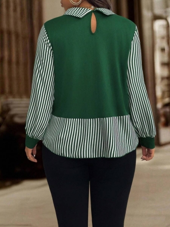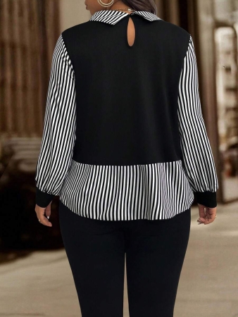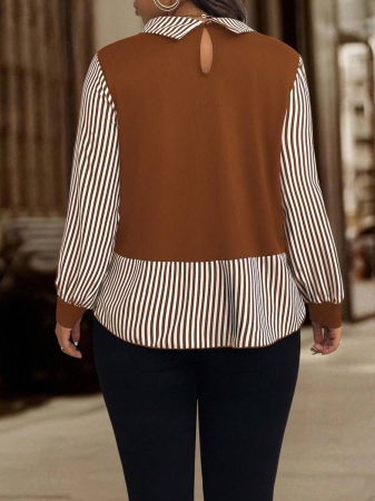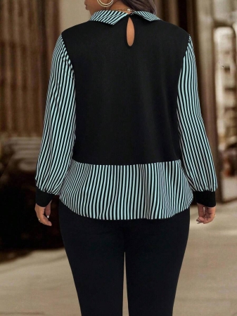 EMERY ROSE Plus Size Women Casual Striped Patchwork Blouse Fall Cloth For Women