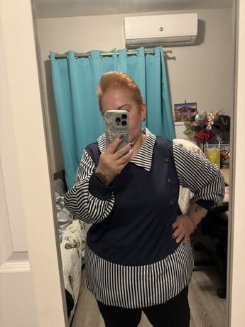 3 reviews for EMERY ROSE Plus Size Women Casual Striped Patchwork Blouse Fall Cloth For Women