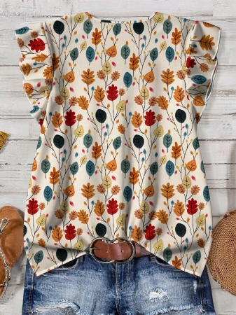 EMERY ROSE Plus Size Women’s Daily Casual Vacation Pink V-Neck Small Flying Sleeves Vacation Style Floral Loose Shirt, Women’s Summer Clothing, Women’s Vacation Clothing, Women’s Summer Clothing, Chic Blouses For Women Women Blouses Boho Blouses Fall Blouses For Women Floral Blouse Women Boho Shirts Women Women Blouses Summer Boho Tops Plus Size