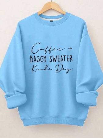 EMERY ROSE Plus Size Women’s Letter Print Hot Selling Round Neck Sweatshirt Fall Cloth For Women Winter Autumn