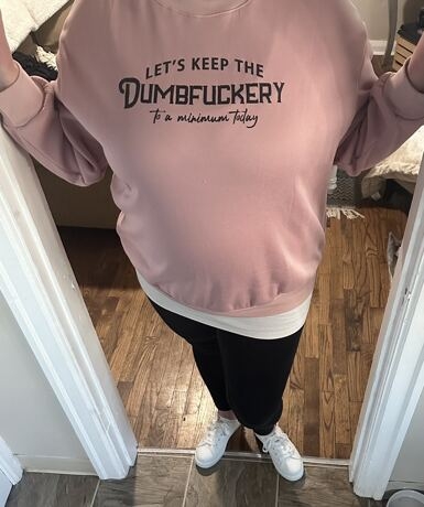 I love it. I always size up because I prefer a baggier. and roomie fit. I am 5’6 tall and weigh 180 pounds. It’s so comfortable. I hope this review helped. Please hit that like button. Thank you and have a fabulous day.