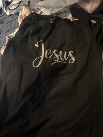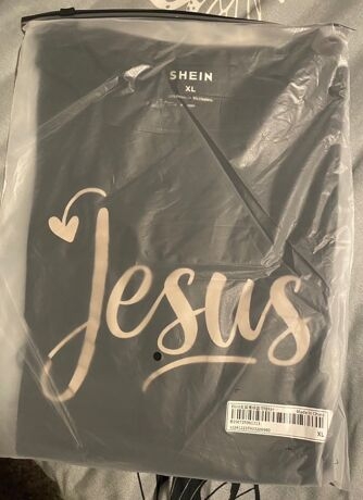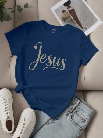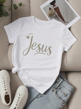 3 reviews for EMERY ROSE Women’s Tops Letter “Jesus” Simple Graphic Print Round Neck Short Sleeves T-Shirt