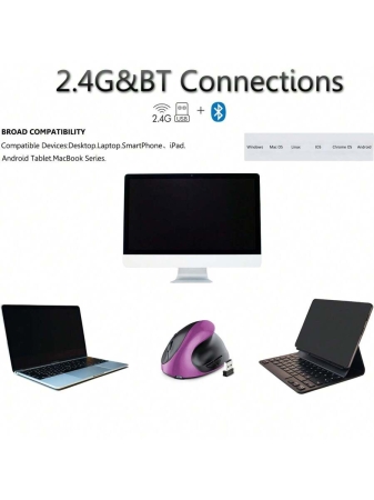Ergonomic Bluetooth5.0 Dual Mode Wireless Vertical Mouse 1600DPI Adjustable Mice 6 Buttons Rechargeable Wireless Silent Mouse For Win/Android/IOS(430mAh)