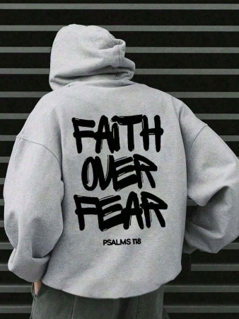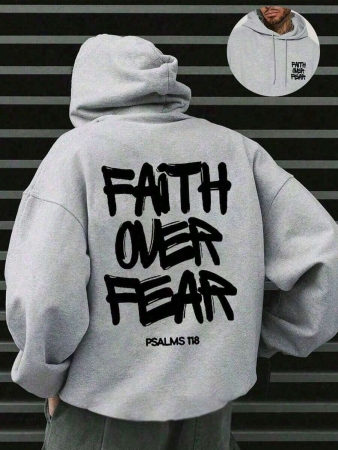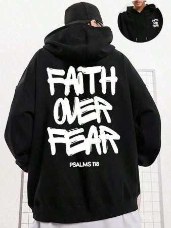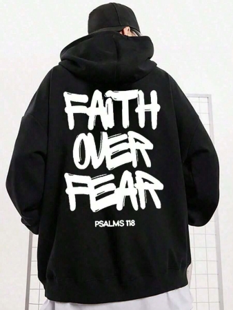 3 reviews for Faith Over Fear, Letter Print Pocket Hoodie, Men’s Casual Long-Sleeve Drawstring Style, Autumn & Winter New-Unisex Loose-Fit Hooded Sweatshirt-K88