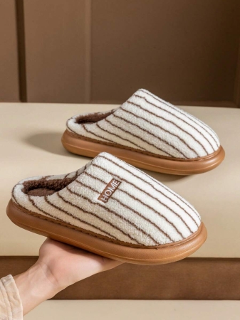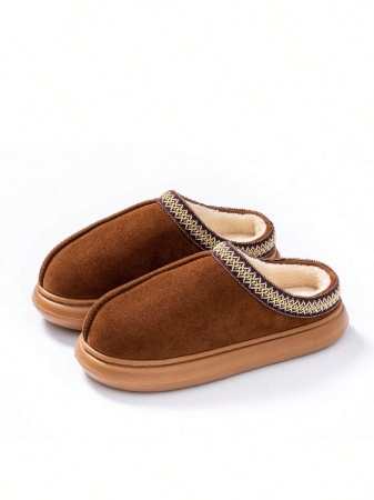 Fashionable & Cozy Men’s Coffee Fuzzy Slippers, Autumn/Winter, Slip Resistant Thick Fluffy House Slippers, Indoor Warm Shoes For Men And Women