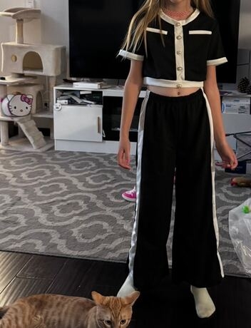 3 reviews for Firerie Kids Firerie Kids Tween Girl Casual & Formal Elegant Back To School Black & White Contrast Pearl Button Top & Straight Leg Color Block Pants