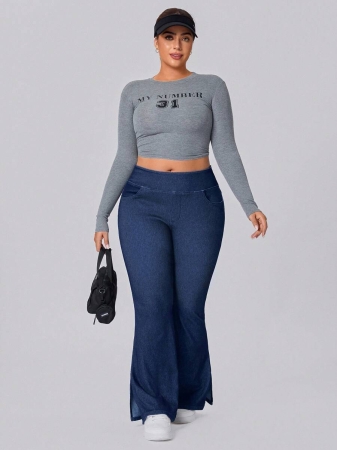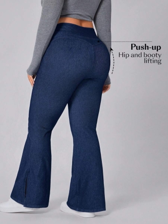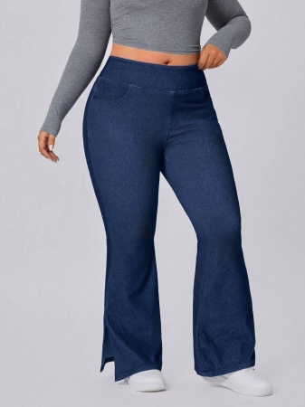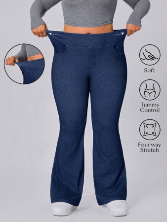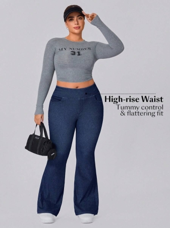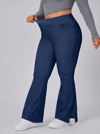 Flexra Plus Size Women Casual Elastic Fitted Flare Leg Jeans