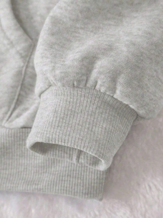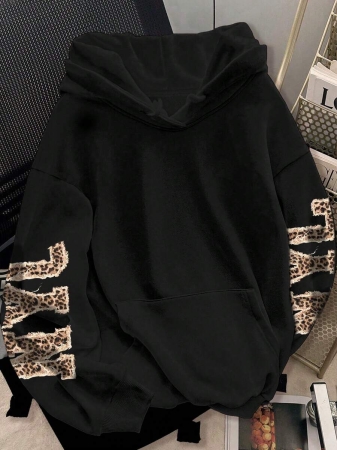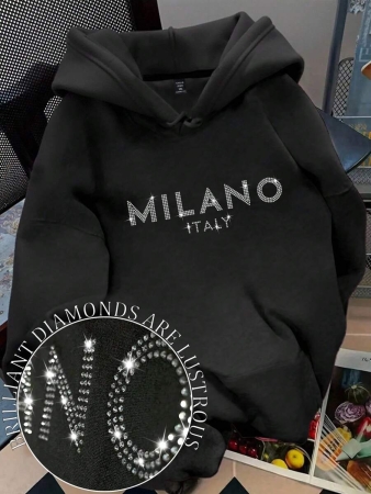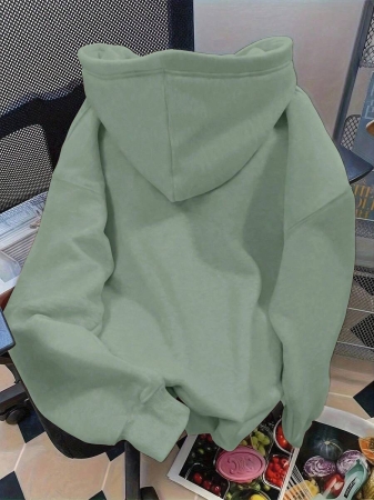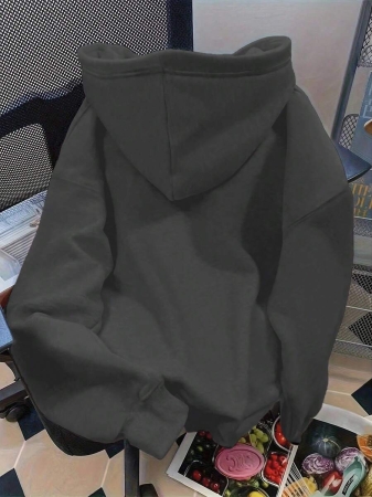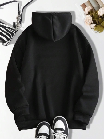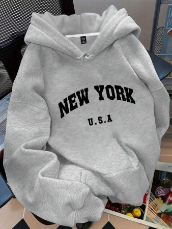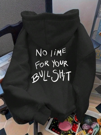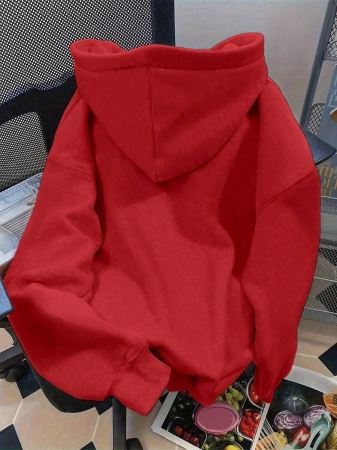 Flirla Plus Size Women’s Letter Graphic Print Thermal Drawstring Hoodie