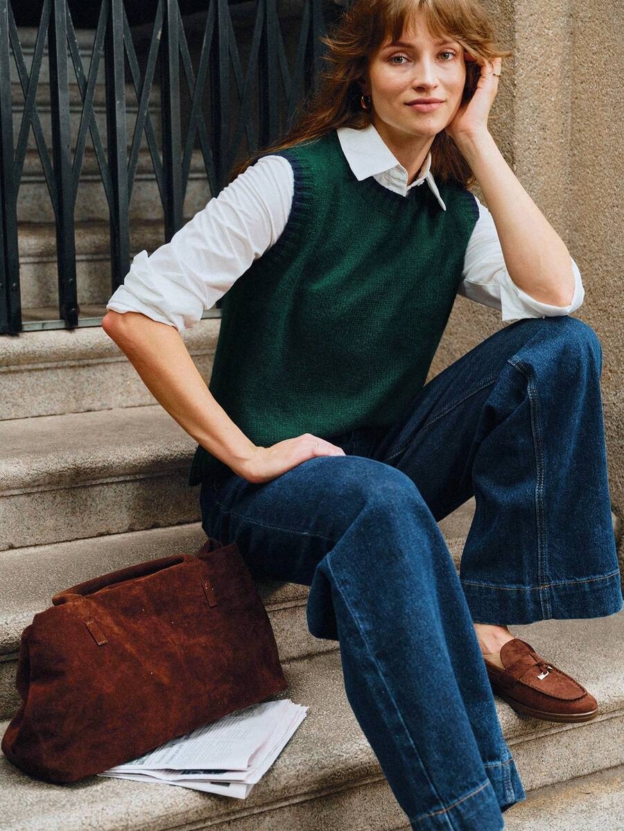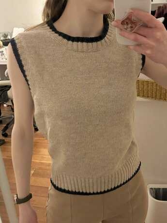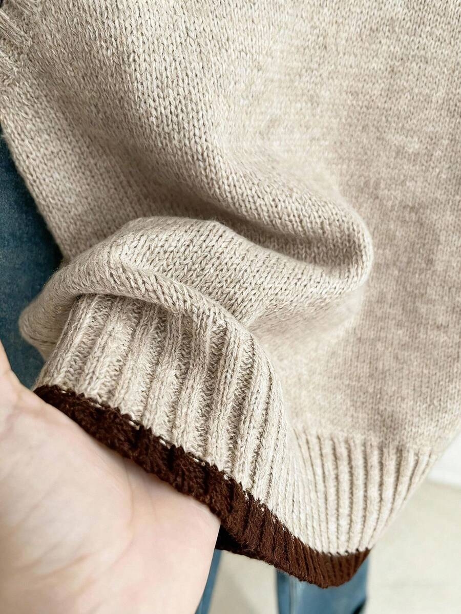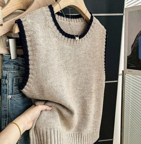 3 reviews for Franclia Back To School Casual Style Loose Round Neck Sleeveless Woolen Woven Contrasting Color Trimmed Khaki Autumn And Winter Women’s Knitted Top Fall Clothes For Women Going Out Tops Women